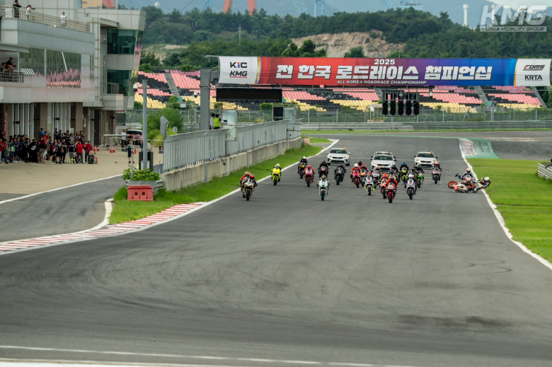 이번 통합전 4라운드는 스타트부터 어이없는 사고로 얼룩졌다. 24대 바이크들이 동시에 출발하는 장관을 연출함도 잠시, 임세윤(HOONBIKE Racing)의 바이크 앞바퀴가 들리며 제대로 머신을 컨트롤 하지 못했고, 직선 주로를 대각선으로 가로지르다 그대로 김원휘와 추돌하며 곧바로 적기가 발령됐다.