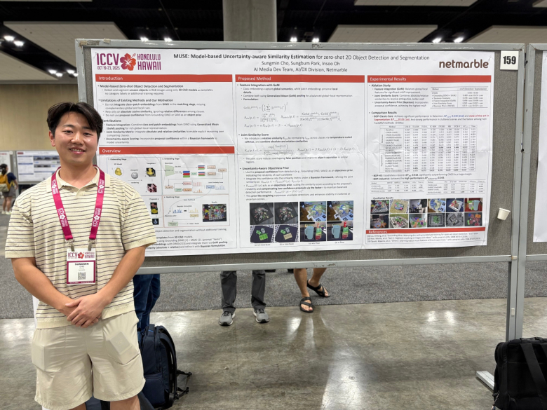 이외에도 넷마블은 2025 국제 컴퓨터 비전 학회의 사물 인식 워크숍에서 논문 ‘MUSE(Model-based Uncertainty-aware Similarity Estimation)’를 발표했다. 이번 논문을 통해 별도의 추가 학습 없이 원하는 객체를 인식하고 분할할 수 있는 혁신적인 AI 연구 성과를 선보이며 학회의 주목을 받았다.
