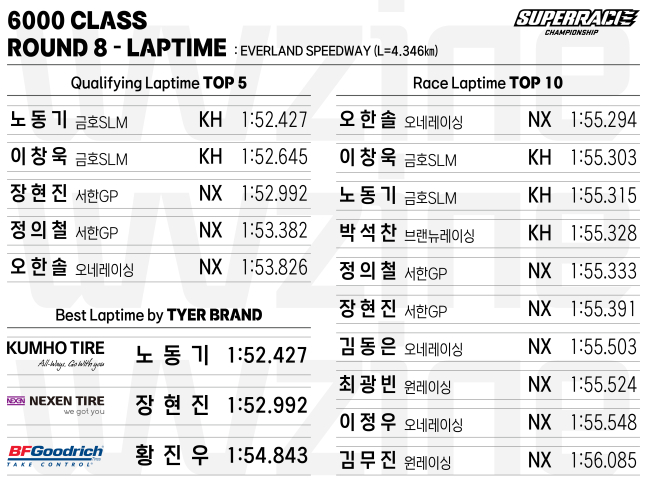 반면 BF굿리치 타이어는 금호타이어와 넥센타이어의 랩타임보다 2초여 느린 기록을 보여주었고, 이로 인해 박정준, 황진우는 포인트 피니시를 달성하는데 실패했다.