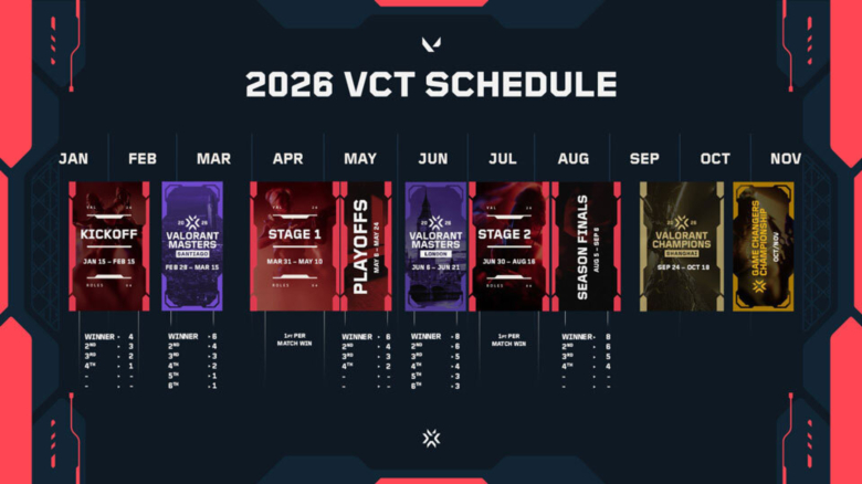 5대5 대전형 캐릭터 기반 전술 슈팅 게임 ‘발로란트’의 개발 및 유통사인 라이엇 게임즈는 2026년 발로란트 챔피언스 투어(VCT) 시즌의 주요 운영 방식과 국제 대회 일정, 새롭게 추가된 챔피언스 진출 경로 등을 포함한 새로운 연간 로드맵을 발표했다.