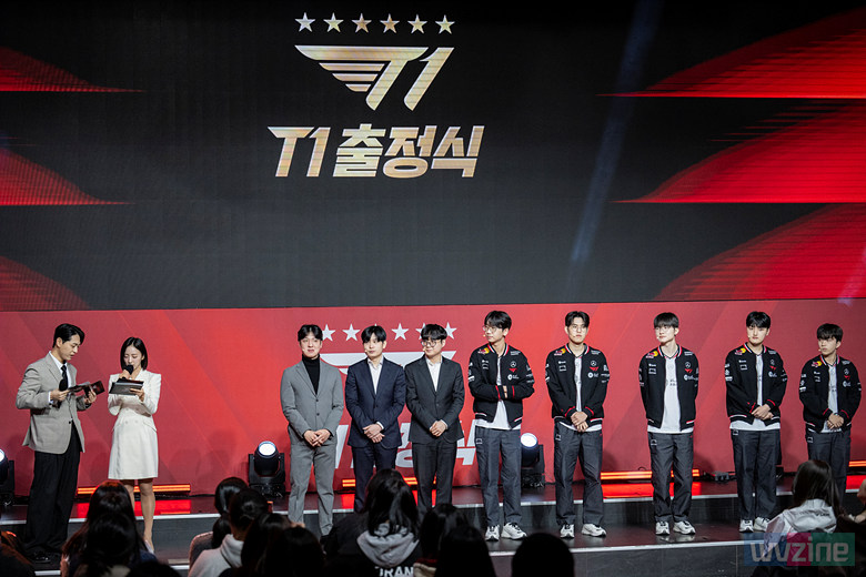 지난 26일, 서울시 송파구에 위치한 잠실DN콜로세움에서 개최된 T1 출정식에는 T1의 사령탑인 김정균 감독과 임재현 코치, 조세형 코치를 필두로 기존 멤버인 최현준(Doran), 문현준(Oner), 이상혁(Faker), 류민석(Keria)과 2026년부터 새롭게 합류하게 된 김수환(Peyz)이 자리해 다가오는 시즌에 대한 포부를 밝혔다.