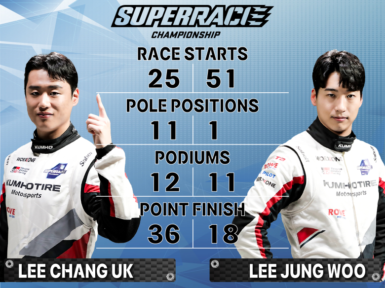 두 선수는 2022년 엑스타 레이싱에서 팀 메이트로 호흡을 맞춘 바 있어 이번 시즌에 보여줄 시너지 효과에 대한 기대도 크다. 이창욱은 6000클래스에서 개인통산 25회 참가 중 8번의 우승과 12번의 포디엄 피니시를 차지하며 저력을 입증해 보여줬으며, 동시에 현대N페스티벌 eN1클래스에서도 종합 우승을 거둬 더블 챔피언으로 최고의 한해를 보냈다.