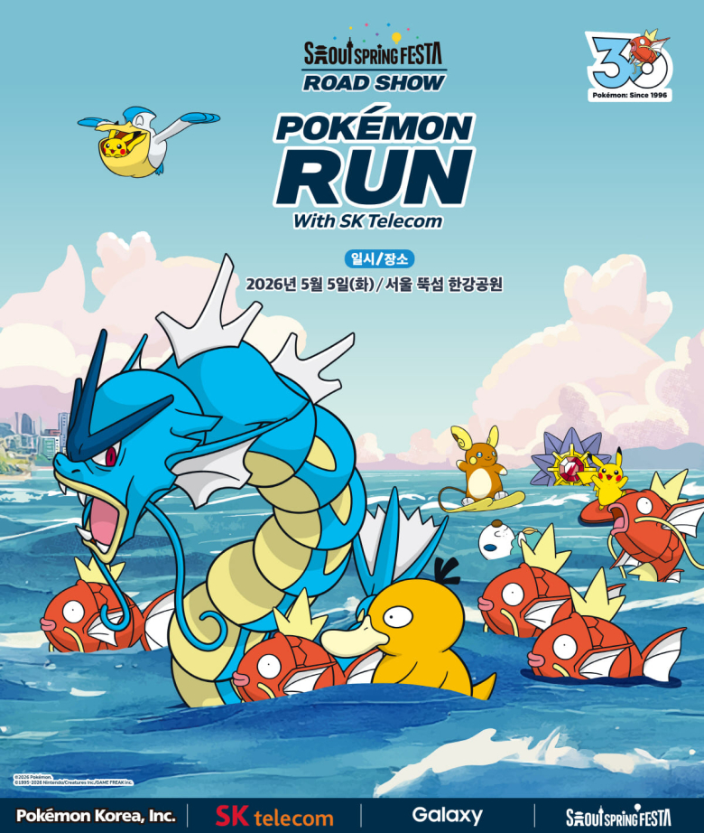 오는 5월 5일 어린이날 서울 한강 뚝섬공원 일대에서 개최되는 포켓몬 런 2026은 ‘처음엔 느리고 서툴러도 달리다 보면 갸라도스처럼 강해진다’는 잉어킹 서사를 콘셉트로, 약 5,000명의 참가자가 잉어킹이 되어 한강을 달리면서 색다른 추억을 쌓을 수 있다.