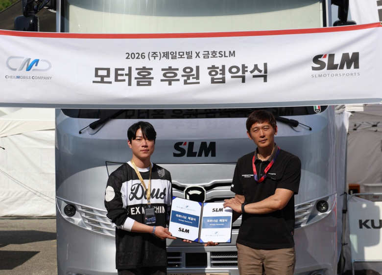 금호타이어가 후원하는 명문 모터스포츠 팀 금호 SLM이 국내 1위 캠핑카 및 모터홈 제작 전문 기업 제일모빌과 2026 시즌 전략적 파트너십(모터홈 후원 협약)을 체결했다고 밝혔다.